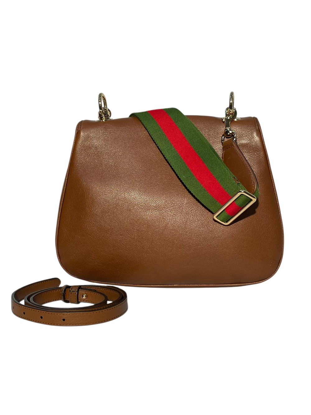 -Leather crossbody strap and signature web strap